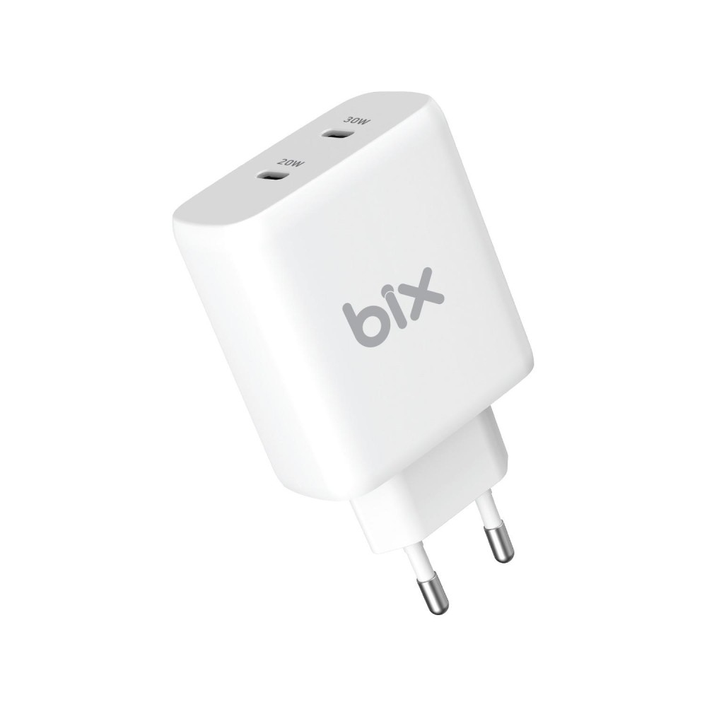 - Bix 50W USB-C Çift Portlu Hızlı Şarj Adaptörü iPhone, Android ve iPad Uyumlu Type-C PD Şarj Aleti